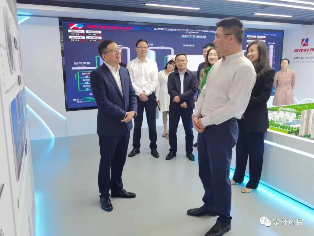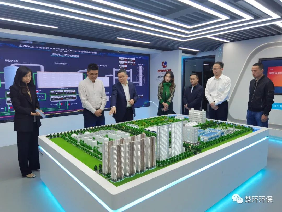 沈卓恒书记一行参观了楚环科技企业展厅,董事长兼总经理陈步东通过业务场景沙盘展示及云平台远程数据终端体现,介绍了企业的业务形态及结构组成,并详细解说了企业发展及未来的规划。