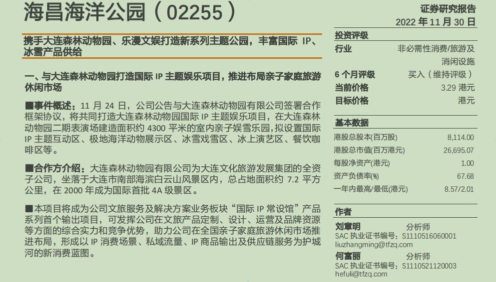 图片来源:研报《携手大连森林动物园、乐漫文娱打造新系列主题公园,丰富国际IP、冰雪产品供给》