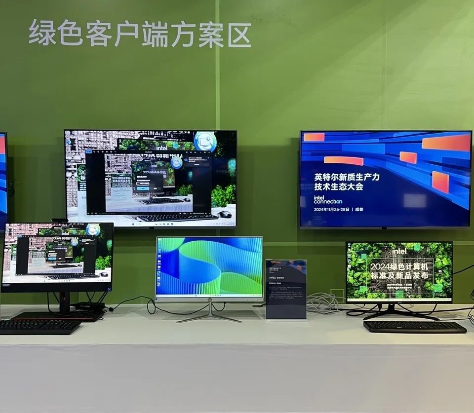 智微还展示了创新的GREEN PC和GREEN AI一体机。这一系列产品,在设计理念、材料选用、生产制造、用户体验以及最终的回收再利用这五大关键环节上,均秉持着打造绿色、节能且易于回收的环保理念。GREEN AI一体机搭载了Intel最新Metoer Lake Ultra 系列平台处理器。Intel 4工艺和38 TOPS NPU算力,为用户提供强劲的AI计算性能,更加适用于加载各项AI功能,以及智能美颜、抠除背景、辅助办公等应用,成为用户真正的AI智能助手。独家“均热板”散热,在有限空间内实现一体化的整机结构。