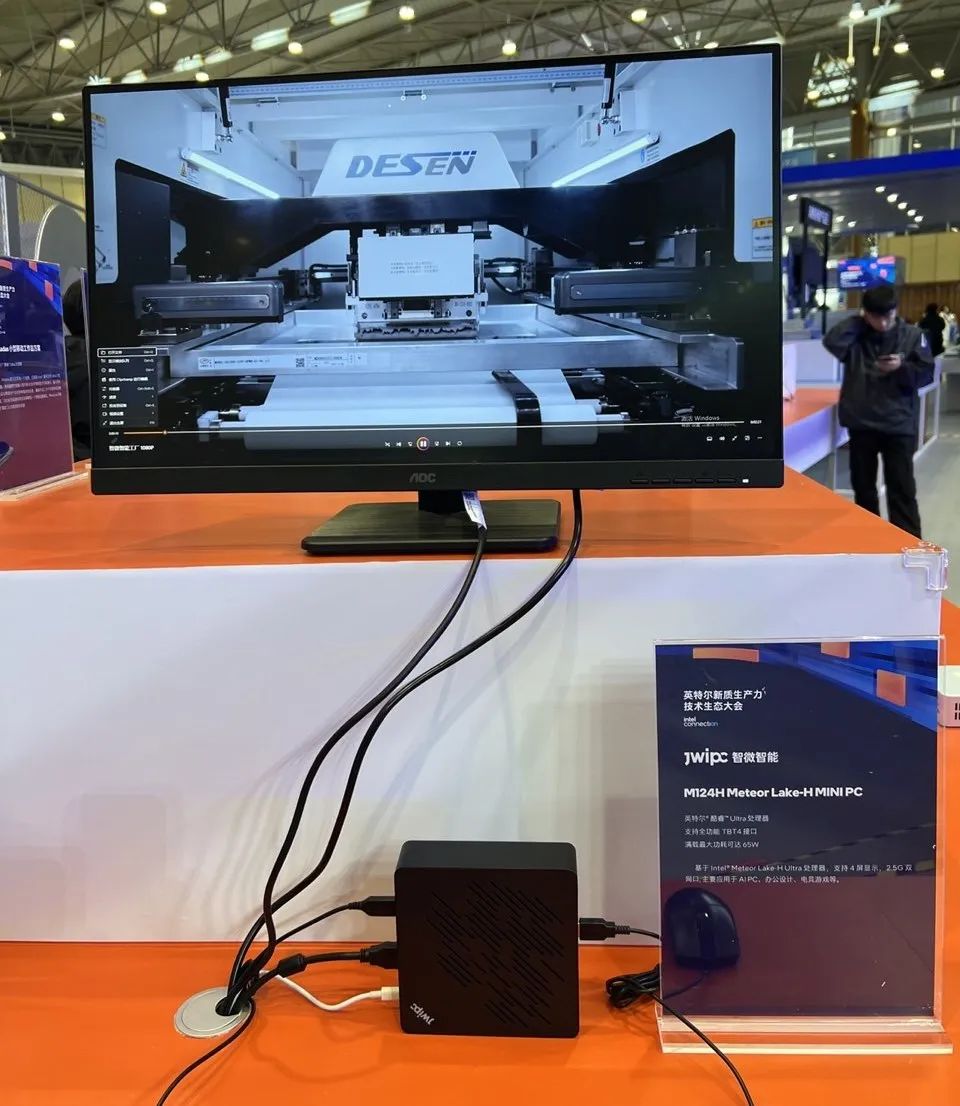 英特尔在大会上表示,将与生态合作伙伴共同推进在2025年底前出货超过1亿台AI PC的目标。作为英特尔重要的合作伙伴,智微智能也推出了不同形态的AI PC。其中,M124H AI MINI PC,搭载了基于Meteor Lake架构的英特尔酷睿Ultra处理器,通过多级XPU设计,实现了高达36TOPS的AI计算能力,可轻松驾驭多种本地AI应用的运行需求。这款 AI MINI PC不仅小巧时尚,更配备了高效的散热系统,确保了长时间运行的稳定性。同时,它支持4K四屏同步显示功能,无论是专业办公设计还是沉浸式电脑游戏,都能为用户提供流畅的智能体验和视觉盛宴。