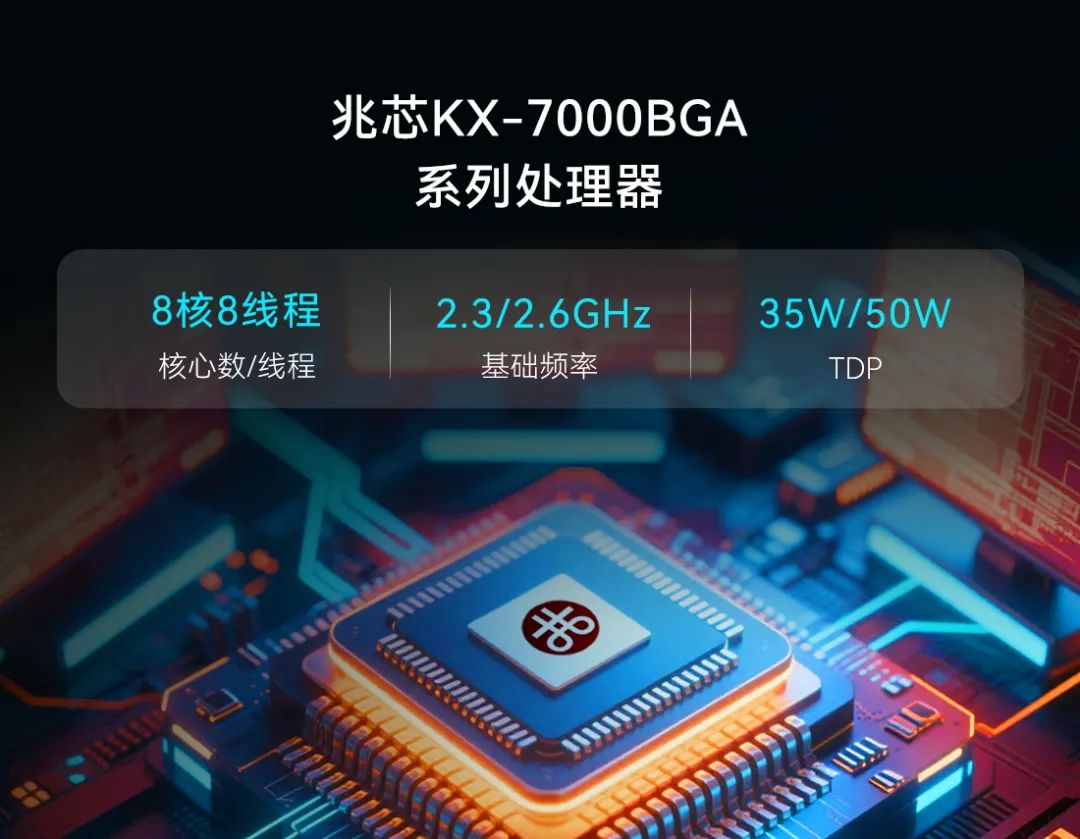 S0Z7系列搭载兆芯KX-7000 BGA系列处理器,8核8线程架构加上35/50W TDP设计,兼顾高性能与低功耗,轻松应对超清会议/大型教学视频解码、渲染演示等高负载场景,确保课堂与会议显示流畅无卡顿。