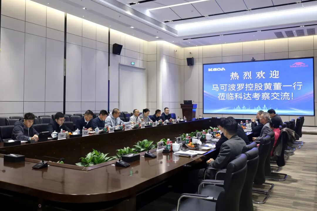 1月21日,马可波罗控股股份有限公司(以下简称“马可波罗”)董事长黄建平、总裁谢悦增、副总裁刘晃球、总裁助理钟伟强等一行莅临科达制造总部参观指导并深度交流,公司董事长边程,董事、总经理杨学先,董事、海外建材业务板块总裁李跃进等公司高层团队热情接待了到访嘉宾。