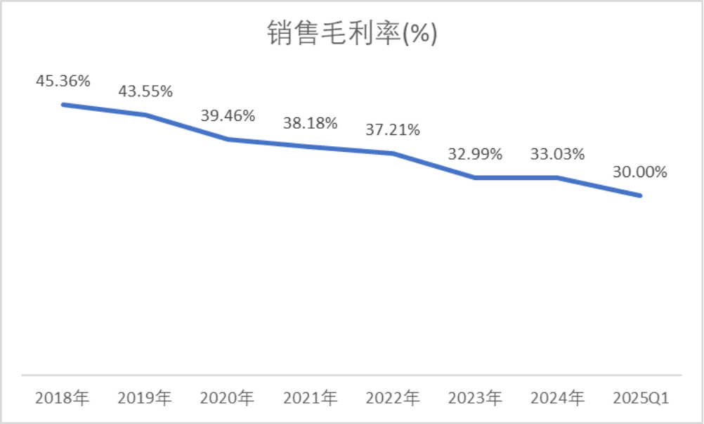 技术优势难换利润空间,毛利率7年跌超12pcts