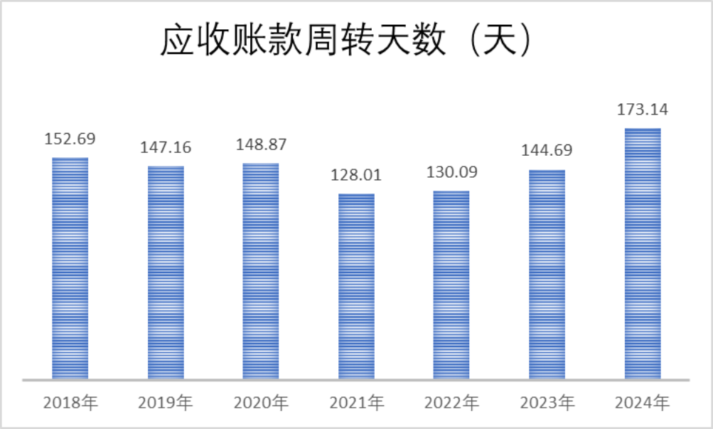 应收账款周转天数也出现明显上涨,特别是近四年里上涨超45天。