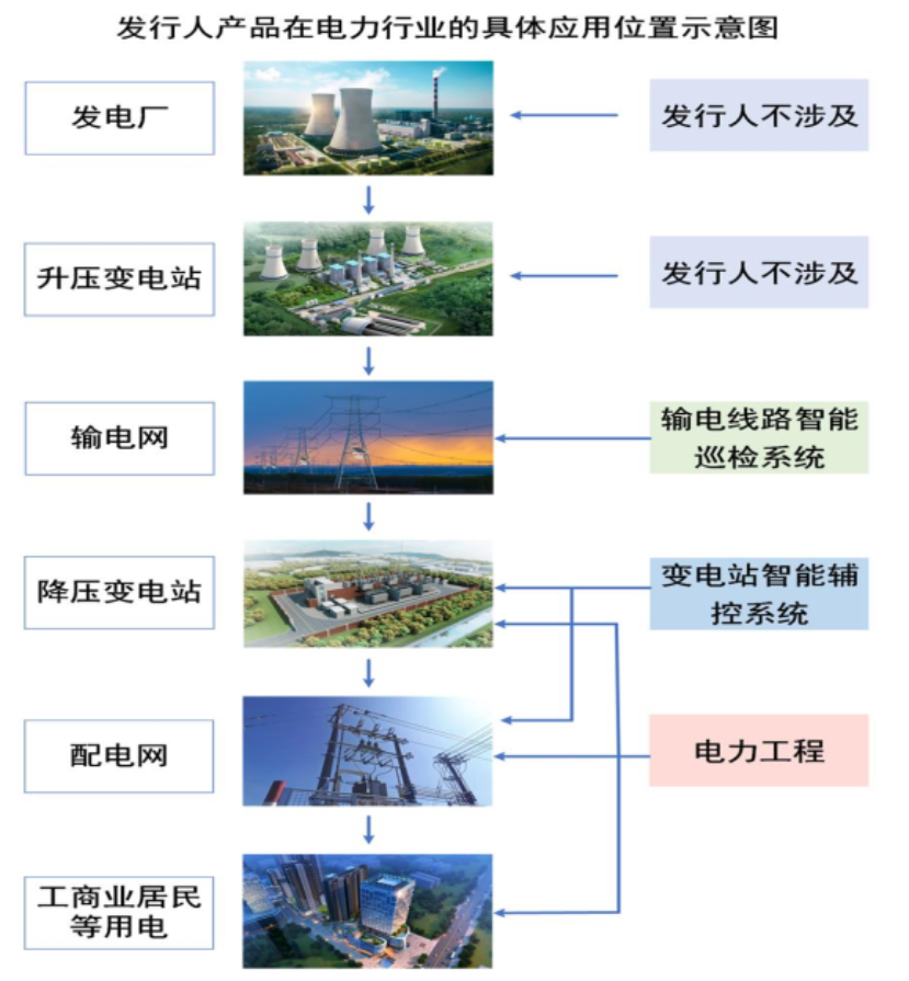随着通信技术、移动智能终端、AI图像识别等技术在工业领域的推广应用,公司将业务拓展至电力系统领域,主营产品包括输电线路智能巡检系统、变电站智能辅控系统、电力工程业务等,可应用在输电网、配电网、降压变电站等领域。