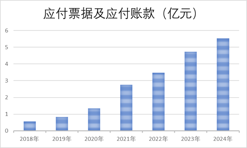 不过,信通电子也并非完全被动挨打。它在一定程度上,把下游压账的压力转移给了上游供应商,过去几年里应付款项也涨了不少。