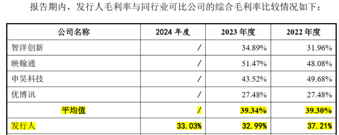 更尴尬的是,即使与同行相比,信通电子的毛利率也不占优势。2022-2023连续两年,其毛利率都跑输了行业平均水平。