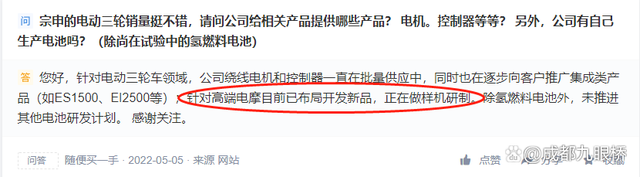 还有一个话题:宗申动力明确指出:针对高端电摩目前已布局开发新品,正在做样机研制。除氢燃料电池外,未推进其他电池研发计划。