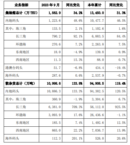 招商港口10月13日公告,公司前三季度集装箱总计1.35亿TEU,同比增长31.3%。