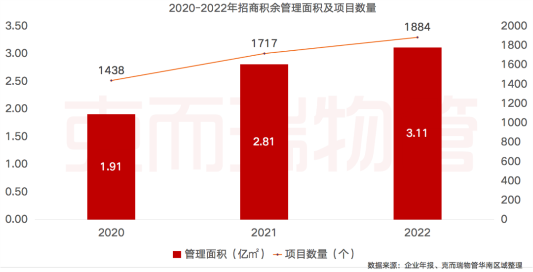 持续扩张,管理面积突破3亿平方米。截至2022年12月31日,招商积余在管项目达到1884个,覆盖了全国127个城市。管理面积达到3.11亿平方米,同比增长10.82%,2020—2022年复合增速达27.73%。