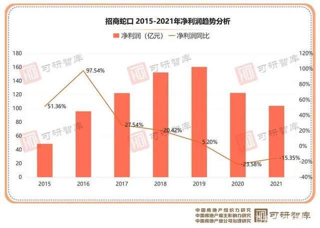 而净利润方面,2015-2021年净利润增速2016年最高达到97.54%,随后逐年增速递减,2020年增速首次出现负增长,增长率为-23.58%。因此,2019年招商蛇口净利润总额达到最高160.33亿元。