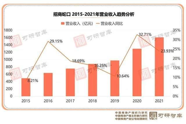 从年报经营数据方面来看:2015-2021年,招商蛇口营业收入总额持续提升,2015年以后,每年增速达到10%以上,2020年实现增速峰值32.71%。