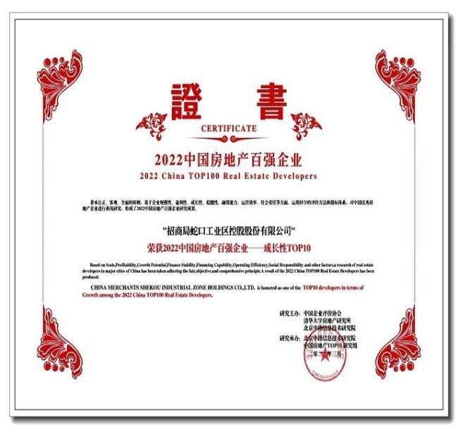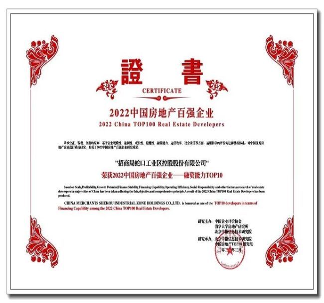招商蛇口同时还入选“2022中国房地产百强企业成长性TOP10”“2022中国房地产百强企业融资能力TOP10”。