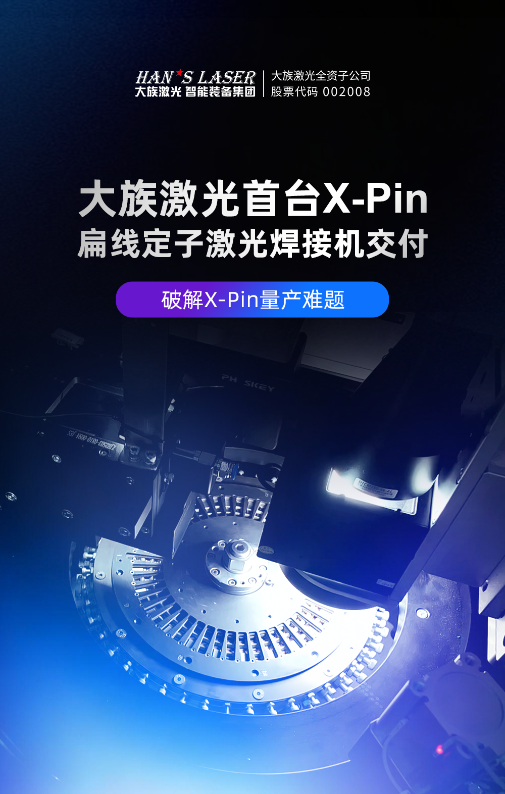近日,由大族激光旗下全资子公司大族激光智能装备集团有限公司(以下简称:智能装备集团)自主研发的X-Pin扁线定子激光焊接机正式下线并顺利交付客户。该设备的成功交付,标志着智能装备集团在新能源电机高端制造装备领域再次取得关键突破,为高性能X-Pin扁线电机的规模化量产提供了强有力的工艺装备保障。