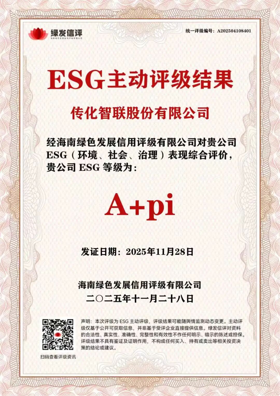 传化智联 已持续发布五份ESG报告,细致展现公司如何以创新驱动产业升级,以ESG赋能高质量发展。此次获评ESG评级A+pi级,不仅是对 传化智联 在ESG管理与实践中各方面努力的肯定,更是对未来可持续发展潜力的认可。