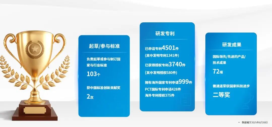 在科技创新方面, 盾安环境 始终将技术研发作为核心发展引擎,在管理政策上对各业务单元的研发费用比例底线做了明确规定。截至 2025年6月30日,公司已申请国内专利4501件,获得国内授权专利3740件;拥有 PCT 国际专利申请428件,海外进国家专利申请999件,海外专利授权375件。同时,公司深度参与行业标准制定,主导或参与101项国家及行业标准的起草修订。