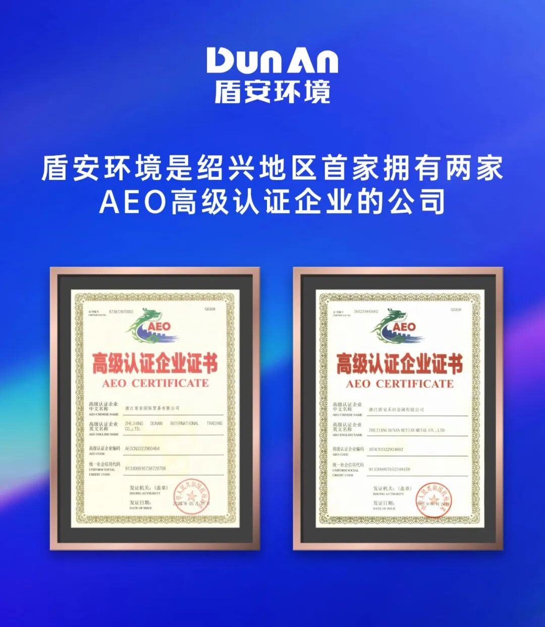 盾安环境是绍兴地区首家拥有两家AEO高级认证企业的公司。AEO(Authorized Economic Operator,经认证的经营者)是世界海关组织倡导的国际通用认证,代表企业在内部管理、贸易安全及合规方面达到国际公认标准。获得AEO高级认证,为企业进入全球市场提供了关键的“信用护照”,不仅能享受通关便利、降低运营成本,更能显著提升供应链的可靠性与国际竞争力。