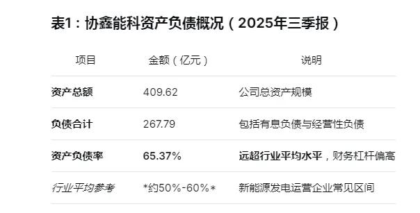 2025年三季报显示,公司资产总额409.62亿元,负债合计267.79亿元,资产负债率高达65.37%,远超新能源行业平均水平。