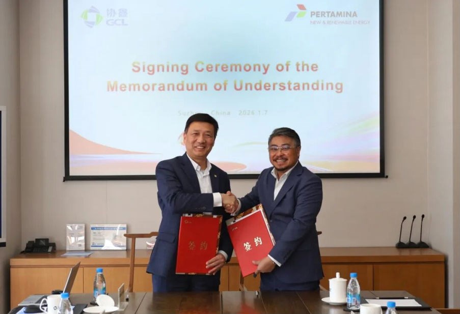 2026年1月7日,协鑫能科与世界500强印尼国家石油公司旗下印尼国家石油电力公司(PPI)在协鑫能源中心正式签署谅解备忘录(MOU)。协鑫集团副董事长、协鑫能科总裁费智与PPI首席执行官John Anis代表双方签约,标志着中企能源技术与印尼国家能源转型战略实现深度对接,为协鑫能科国际化战略再添关键支点。