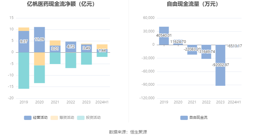 进一步统计发现,2024年上半年公司自由现金流为-6513.17万元,上年同期为-18490.34万元。