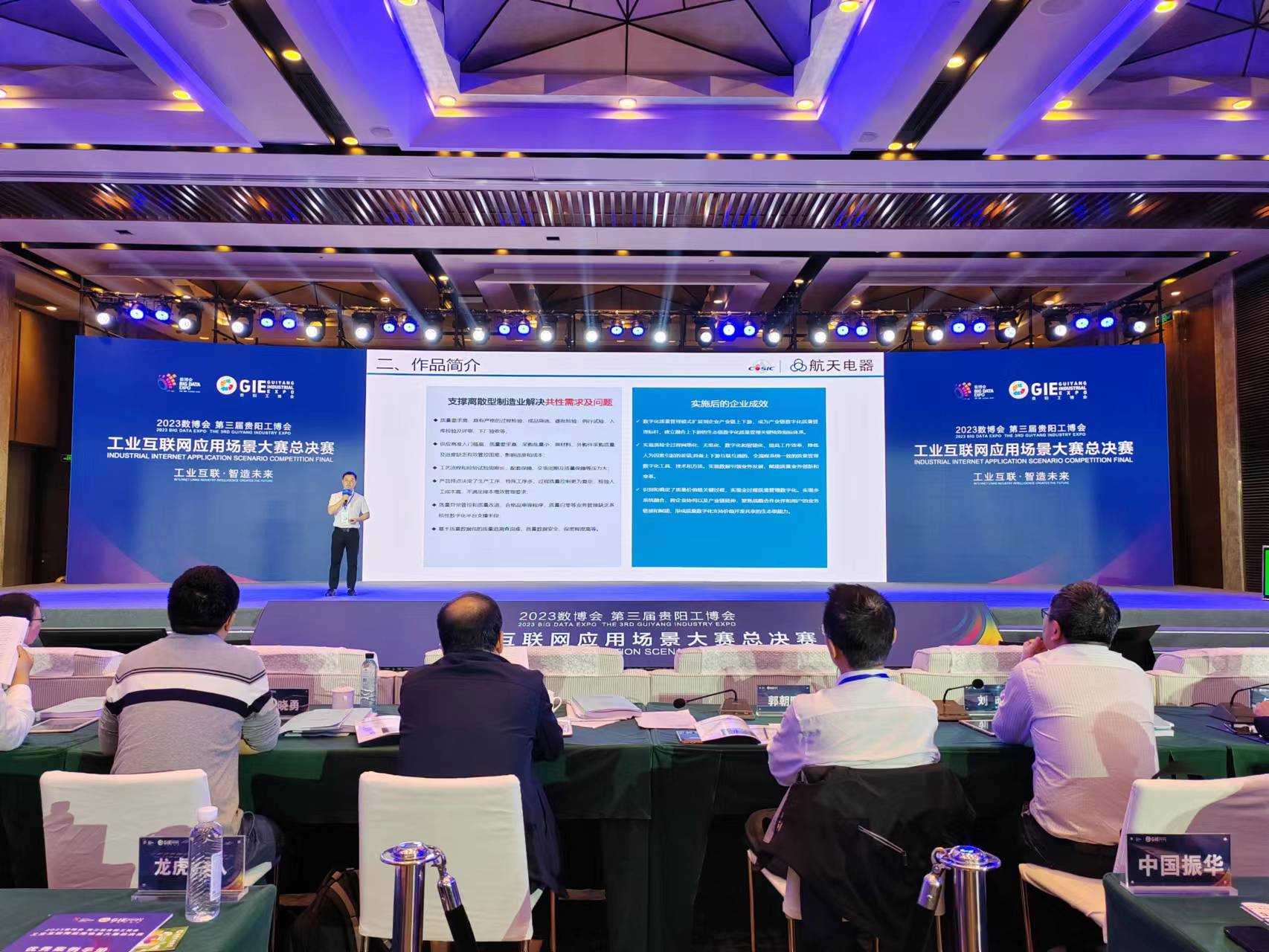 5月25日, 2023数博会·第三届贵阳工博会——工业互联网应用场景大赛总决赛在贵阳举行,航天电器全生命周期数字精益质量管理平台、铝合金工业型材截面数字化质检系统解决方案2个作品进入总决赛。工业互联网应用场景大赛是 2023数博会的重要活动板块,于3月中旬正式启动报名,赛期为3月至5月。大赛以磷化工、电子信息制造、煤矿、铝及铝加工、酱酒、生物医药六个行业急需解决的工业互联网应用场景问题为赛事需求,通过挂榜揭帅的方式,评比遴选具有实用性、创新性和发展前景的工业互联网应用场景解决方案。本次大赛设置 6个赛题,共24个参赛作品入围总决赛。其中,航天电器共2个作品入围总决赛,分别为:全生命周期数字精益质量管理平台入围电子信息制造赛题总决赛、铝合金工业型材截面数字化质检系统解决方案入围铝及铝加工赛题总决赛,是本次大赛中唯一一家有2个作品入围总决赛的企业。经项目路演、现场答辩、专家评审等环节,凭借过硬的核心技术能力,航天电器 2个参赛作品脱颖而出,分别荣获电子信息制造赛题二等奖、铝及铝加工赛题二等奖。