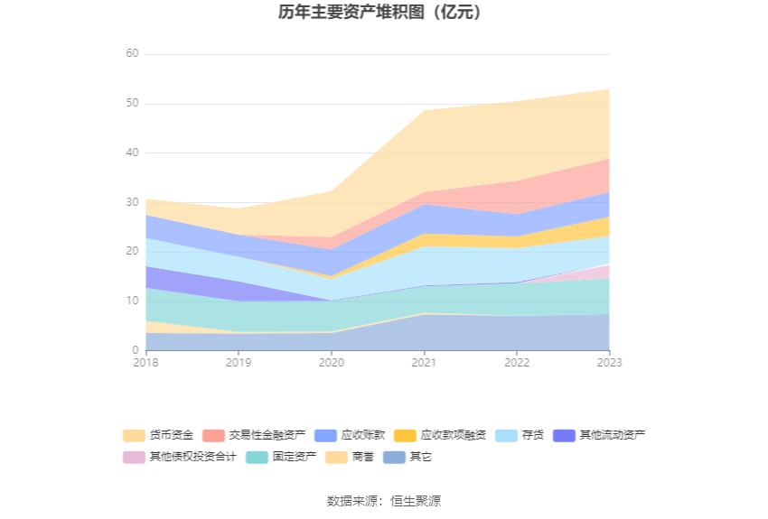 资产重大变化方面,截至2023年年末,公司货币资金较上年末减少12.83%,占公司总资产比重下降5.39个百分点;存货较上年末减少19.14%,占公司总资产比重下降3.12个百分点;应收款项融资较上年末增加65.54%,占公司总资产比重上升2.71个百分点;在建工程较上年末减少28.28%,占公司总资产比重下降0.75个百分点。