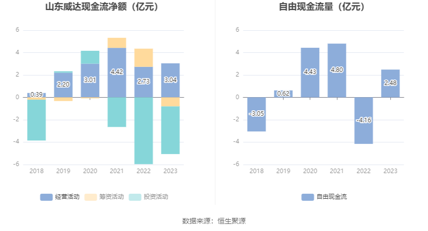 进一步统计发现,2023年公司自由现金流为2.48亿元,上年同期为-4.16亿元。