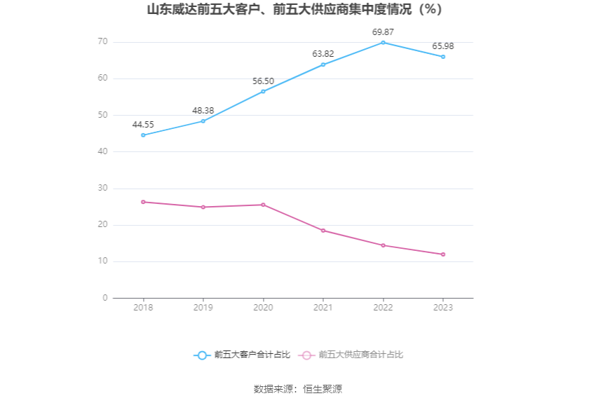 报告期内,公司前五大客户合计销售金额15.62亿元,占总销售金额比例为65.98%,公司前五名供应商合计采购金额1.73亿元,占年度采购总额比例为11.95%。
