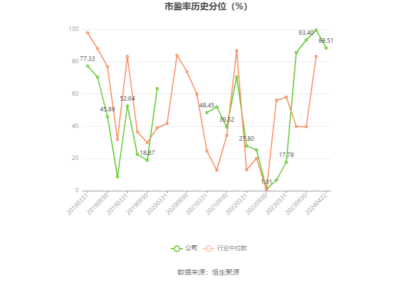市盈率为负时,不显示当期分位数,会导致折线图中断。