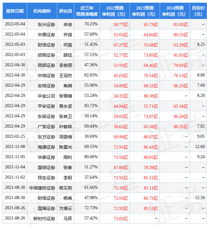 证券之星数据中心根据近三年发布的研报数据计算,平安证券易永坚研究员团队对该股研究较为深入,近三年预测准确度均值高达83.72%,其预测2022年度归属净利润为盈利44.84亿,根据现价换算的预测PE为18.42。