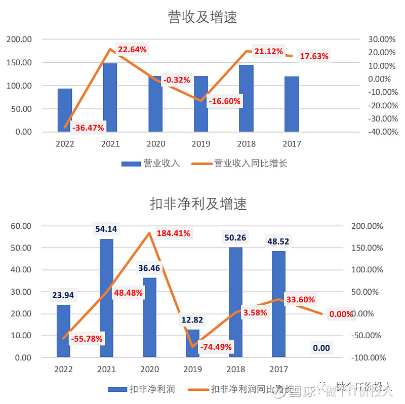 1、2022年营收与扣非净利,分别同比下降36.47%,55.78%。