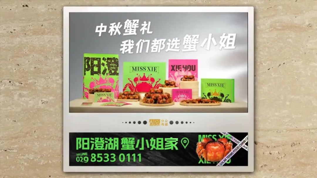 2023年8月,中国节气食物链品牌蟹小姐与中国传媒第一股分众传媒达成战略合作,强势登录西安、成都、郑州、重庆、厦门、太原、乌鲁木齐、呼和浩特、鄂尔多斯、包头、银川等城市梯媒,这是品牌可持续发展的共赢之路,也是服务用户、占据消费者心智的必然之选。