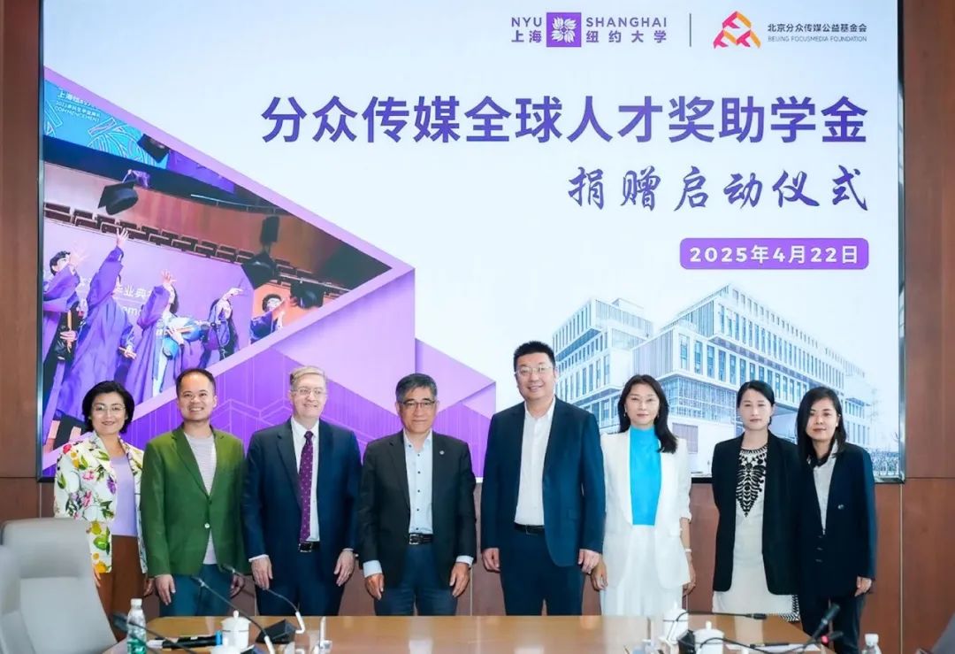 4月22日,上海纽约大学教育发展基金会在前滩校园举办“分众传媒全球人才奖助学金”捐赠启动仪式,宣布这一奖助学金正式启动,并感谢北京分众传媒公益基金会的慷慨捐赠。