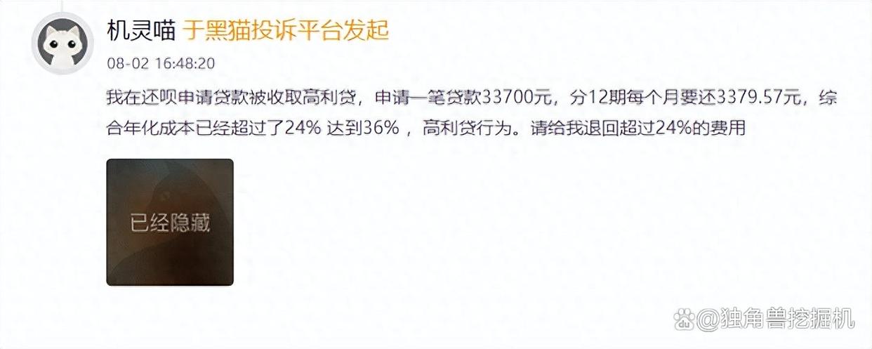 在投诉平台上,还呗36%利率也是被诟病比较多的点。