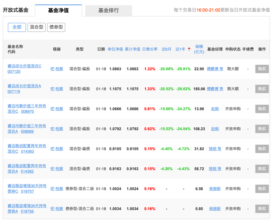 财联社记者从天天基金网查询上述提及的交银施罗德、睿远、兴全基金公司获悉,旗下基金产品近一年的表现均呈现跌多涨少,睿远甚至全军覆没,近一年表现均为下跌,截至发稿,跌幅至多一只产品为-29.91%。