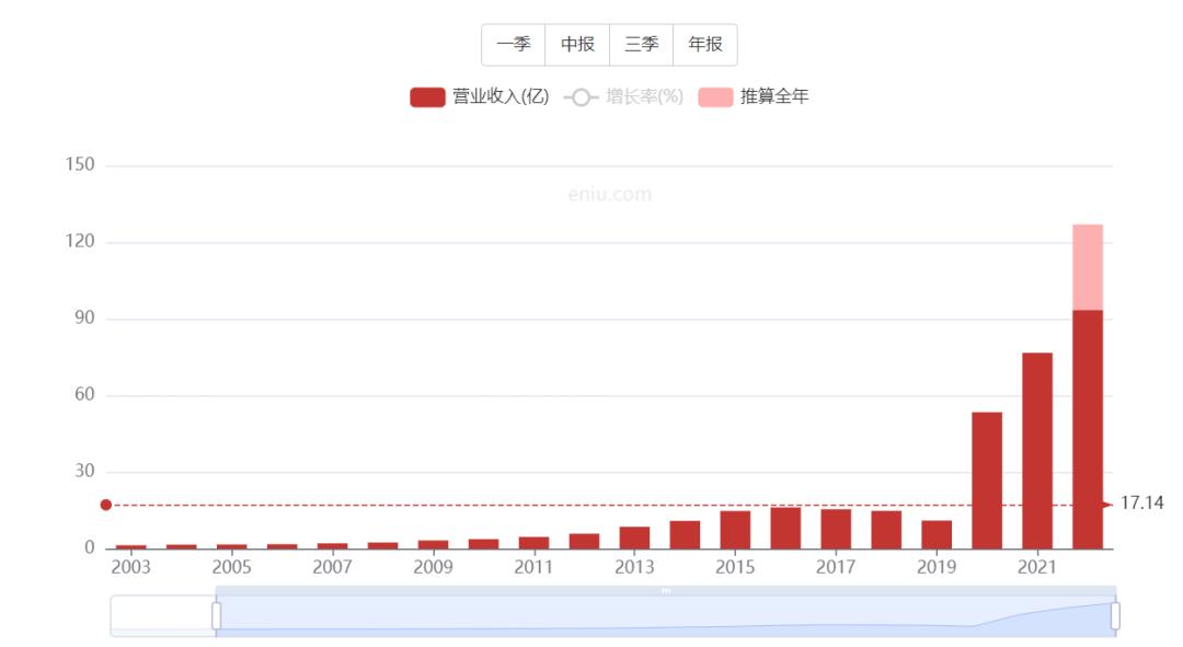 2022年正式年报未出,业绩预告表示2022年全年盈利51亿元至58亿元,同比上年增40.95%至60.3%。其第三季度营收已达93亿,净利润49亿,2022年全年超百亿营收板上钉钉。