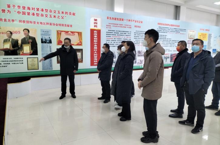 在登海种业,考察组实地察看了登海种业的发展历史展馆、加工储藏车间、实验示范基地,并召开了座谈会。会上,登海种业副总经理,董事会秘书袁绍刚同志从登海种业的发展历史、科研团队、良种繁育、加工机械、市场销售、未来发展等全方位进行了介绍和讲述;就当前种业发展情况、发展理念和发展思路进行探讨;观看了“农业芯片、登海种业”等相关视频。