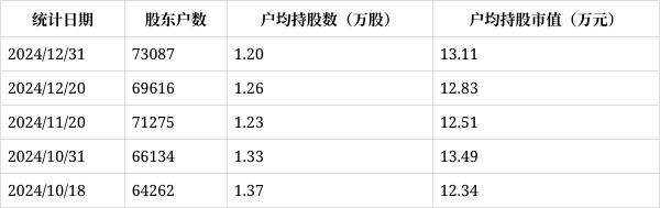 从1月3日公开信息显示,登海种业截至2024年12月31日公司股东户数为7.31万户,较上期(2024年12月20日)增加3471户,增幅为4.99%,变化不大。