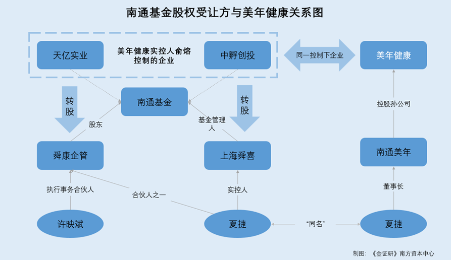 而南通基金成立时的合伙人包括天亿实业、中孵创投、美年健康、上海舜喜等。2020年4月27日,天亿实业将持有的份额转让给寿光舜康企业管理咨询服务合伙企业(有限合伙)(舜康企管的曾用名,以下统称为“舜康企管”),实现退股。