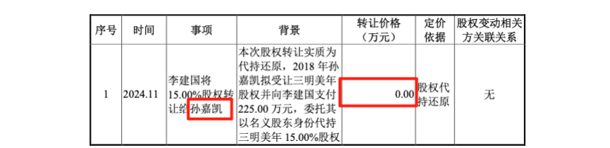 无独有偶,三明美年也在2024年11月发生了一笔15.00%股权的“零对价”转让,受让方孙嘉凯同样是本次交易的核心对手方。尽管其解释为“代持还原”,但在关键时点进行如此大规模的无偿股权集中,其背后是否存在更复杂的利益安排?同样值得监管层穿透核查。这些操作不禁让人质疑,本次重组是否已沦为少数内部人利用信息优势进行资本运作和利益分配的工具?作为本次交易的财务顾问与法律顾问,其中介机构是否对这些股权转让的背景、动机与合规性进行了实质性的核查?