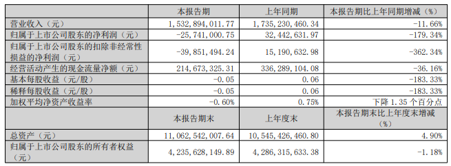 一季报:营收降11.7%、净利亏损2574万元