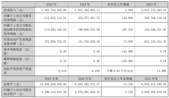 年报:营收微增0.08%、净利亏损1.13亿元