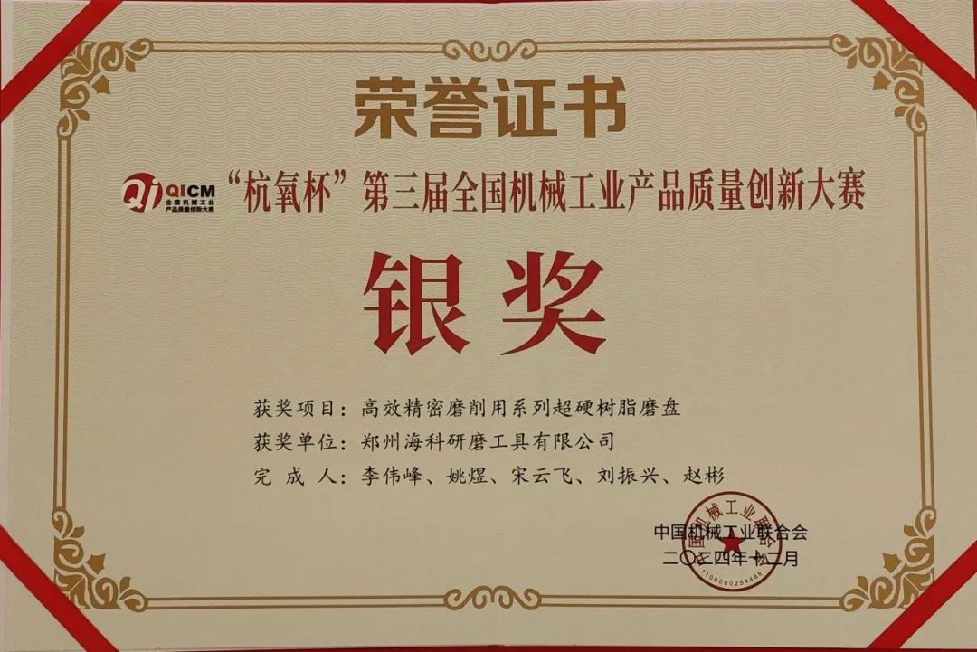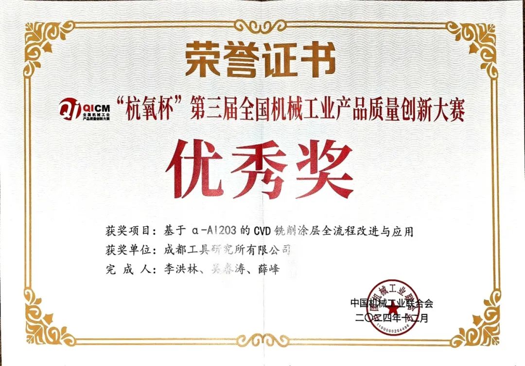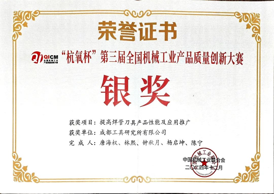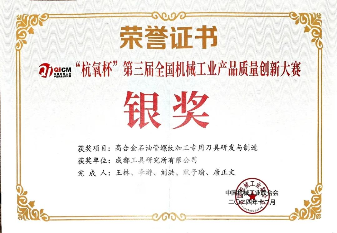本次大赛国机精工再创佳绩,国机精工所属轴研所“航天精密轴承产品质量创新”项目荣获金奖,工研所“提高焊管刀具产品性能及应用推广”、“高合金石油管螺纹加工专用刀具研发与制造”及海科公司“高效精密磨削用系列超硬树脂磨盘”项目荣获银奖,工研所“基于α-A1203的CVD铣削涂层全流程改进与应用”项目荣获优秀奖。