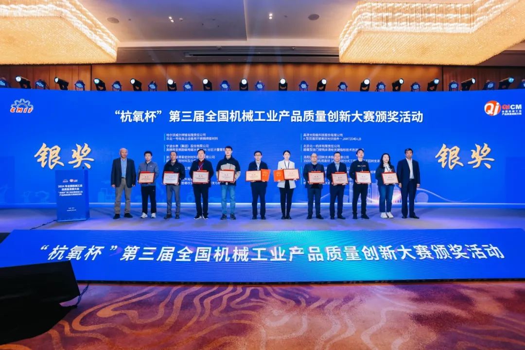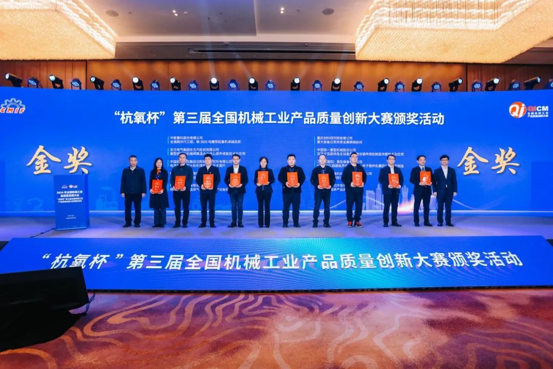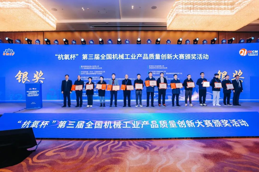 近日,由中国机械工业联合会和中国机械工业集团有限公司共同主办,以“守正创新质胜未来”为主题的2024年全国机械工业高质量发展大会暨“杭氧杯”第三届全国机械工业产品质量创新大赛颁奖活动在杭州成功举办。产品质量创新大赛经过线上初赛评审、专业协会复审、决赛评审等环节,最终确定共有241项产品质量创新项目获奖,其中金奖30项、银奖100项、优秀奖111项,大会现场颁发了“杭氧杯”第三届全国机械工业产品质量创新大赛证书及奖牌。