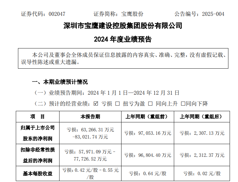 乐居财经李兰 1月16日,宝鹰股份(002047.SZ)发布2024年度业绩预告。