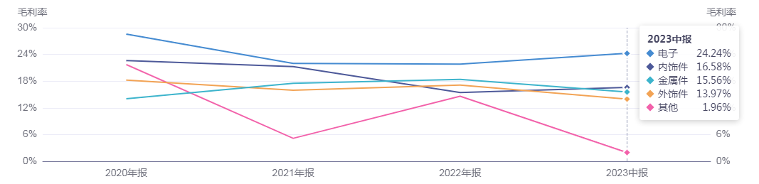 其中,上海翼锐汽车科技有限公司的X事业部专为公司开展在智能驾驶舱等方面的研发项目,2023年初完成收购的CMS电子后视镜业务,也进一步增强了公司在以“智能座舱”为主要方向的电子类综合能力。