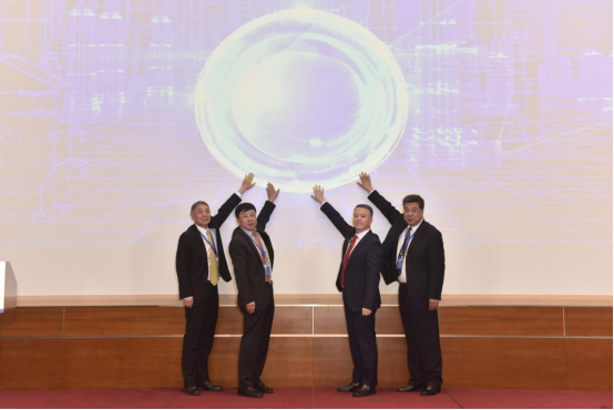 中国中元董事长丁建、国机集团战略发展部部长王小虎、中工国际董事长王博、北起院董事长唐超共同揭幕中工国际战略规划发布仪式