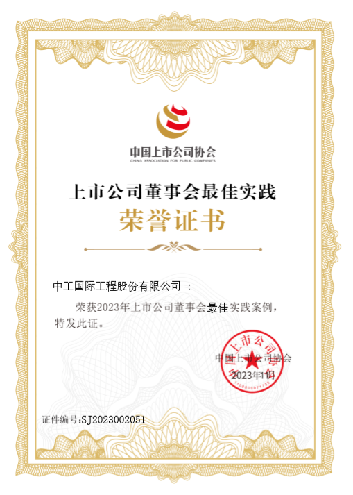 近年来,中工国际将“显著提高上市公司质量”作为“十四五”战略目标之一,不断提升公司治理水平、信息披露质量和规范运作能力。公司法人治理结构日趋完善,董事会及专门委员会审慎决策、运作高效,外部董事履职保障全方面提升;信息披露公开透明,连续获得深交所最高评级。公司将ESG管理理念融入经营管理各环节,走在同行业公司前列。凭借一系列卓有成效的创新特色举措,公司最终脱颖而出,成为最佳实践之一。