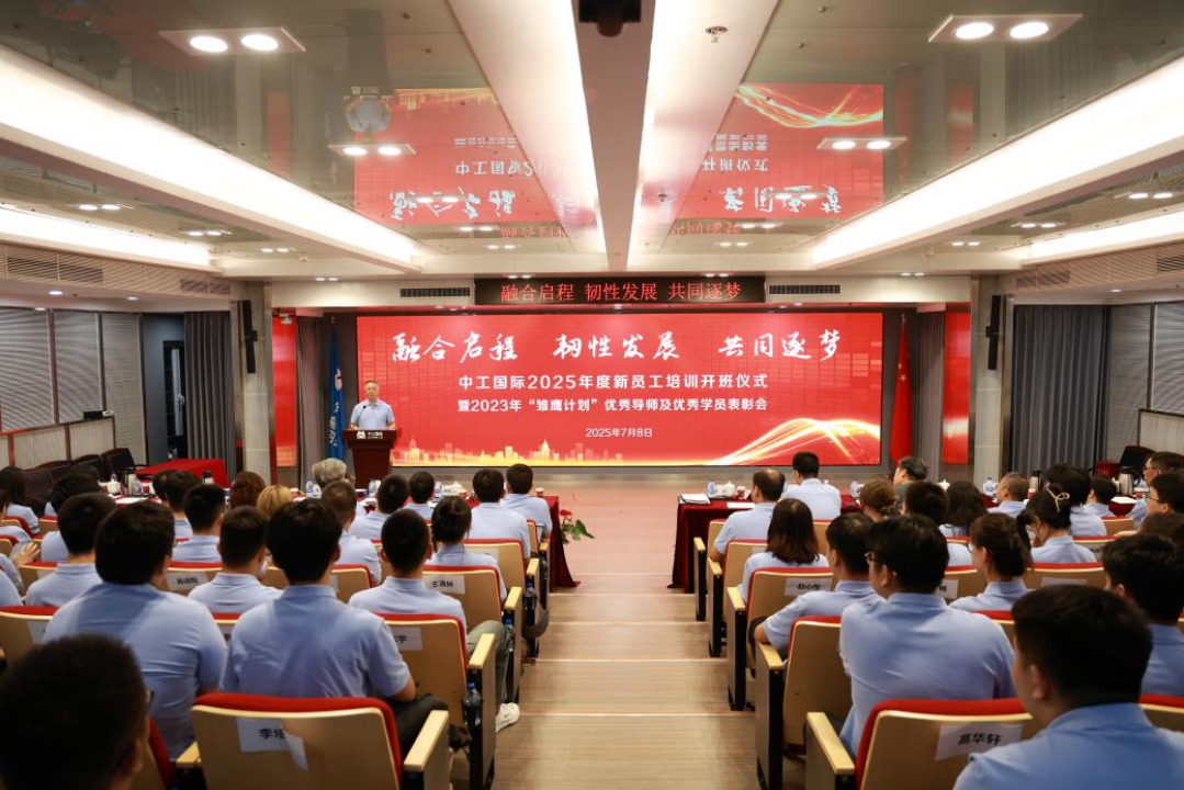 7月8日,公司举行了中工国际2025年度新员工培训开班仪式,王博董事长出席并讲授入职第一课。王博向新入职员工表达了诚挚欢迎并提出了殷切期望,嘱托新员工深刻理解并主动践行公司的核心价值观,拥抱融合发展的战略要求,迅速融入团队、融入项目、融入中工的文化血脉,勉励大家围绕“韧性发展”年度主题,共献青春智慧,共赴发展新篇。