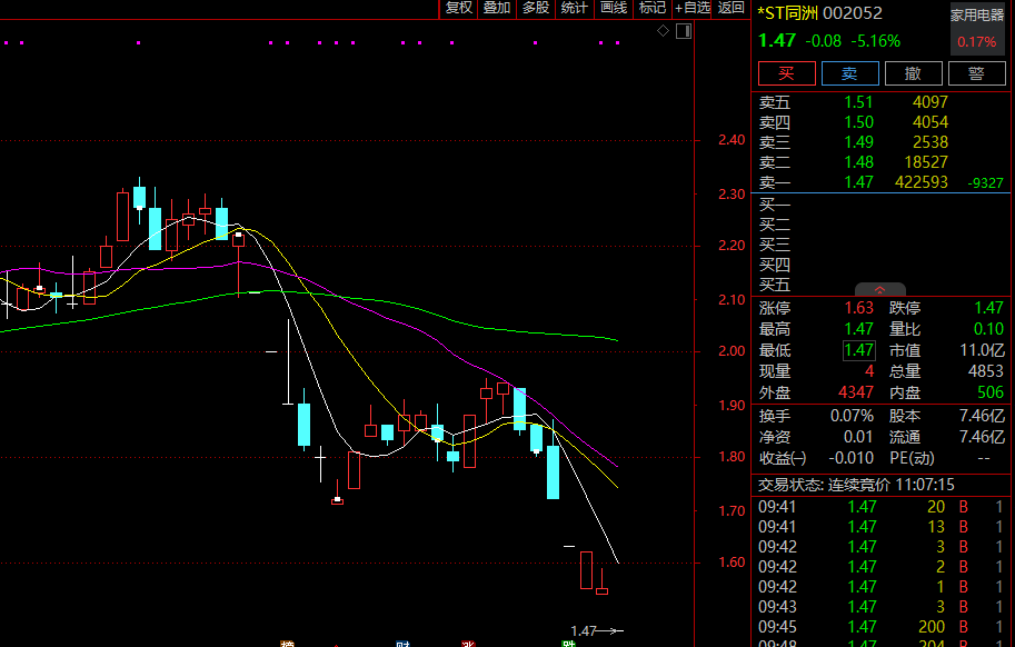 不过,由于该笔交易存在较大不确定性,以及公司本身存在的风险问题,*ST同洲上涨也未持续太长时间,4个涨停后紧接着出现7个跌停。截至目前,*ST同洲股价1.47元/股,较年内高点累计下跌超40%。
